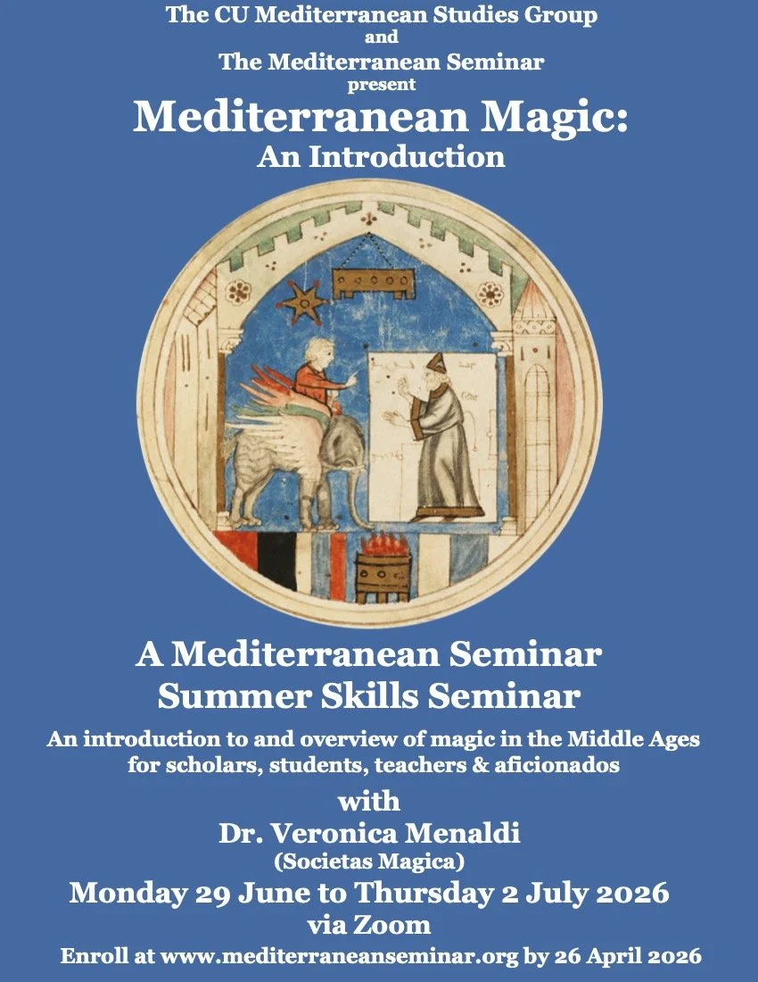 The Summer Skills Seminar, “Mediterranean Magic: An Introduction” will be held via Zoom from Monday, 29 June to Thursday, 2 July 2026 from 10am to noon and 1pm to 3pm MDT.