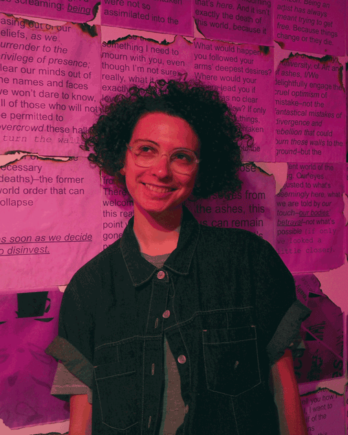 kimi malka hanauer is an artist, publisher, facilitator, and writer. kimi is a founding collective member of publishing initiative, Press Press (est. 2014), and steward of nomadic education project, Center for Liberatory Practice & Poetry (est. 2021). In their practice, kimi cultivates poetic and material interventions into the intimate operations of imperial fields of power. Through various responsive forms, such as organizations, installations, texts, videos, programs and printed matter, they iterate methods and resources for scaffolding autonomous communities.